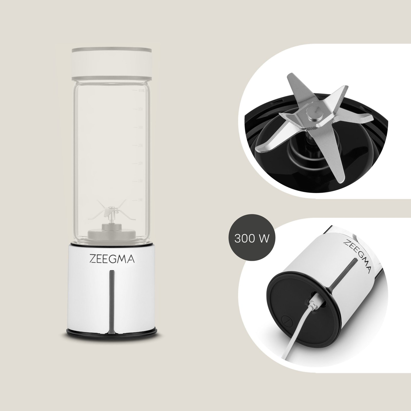 Zeegma Zeegma Akku-Smoothie-Maker VITAMINE GO PLUS, 300,00 W, 465ml / 26000r pm/5000mAh/ USB-C/Motor aus japanischem Stahl Smoothie-Maker