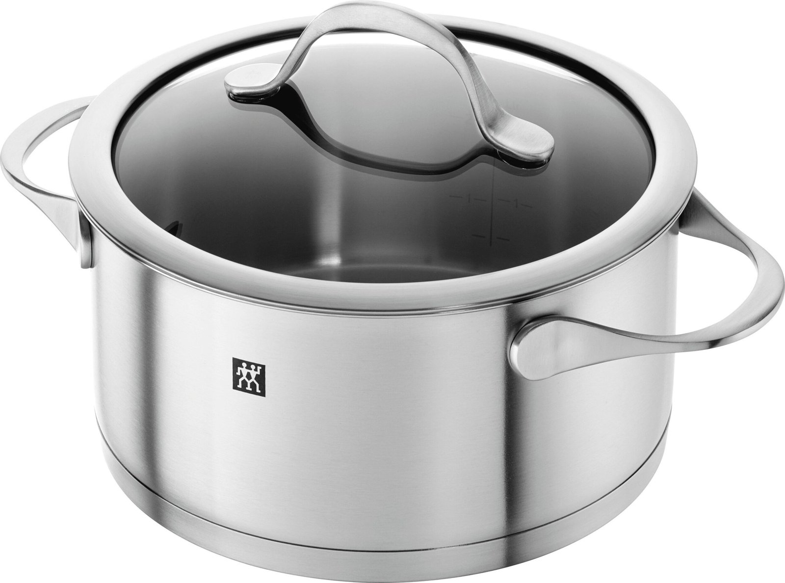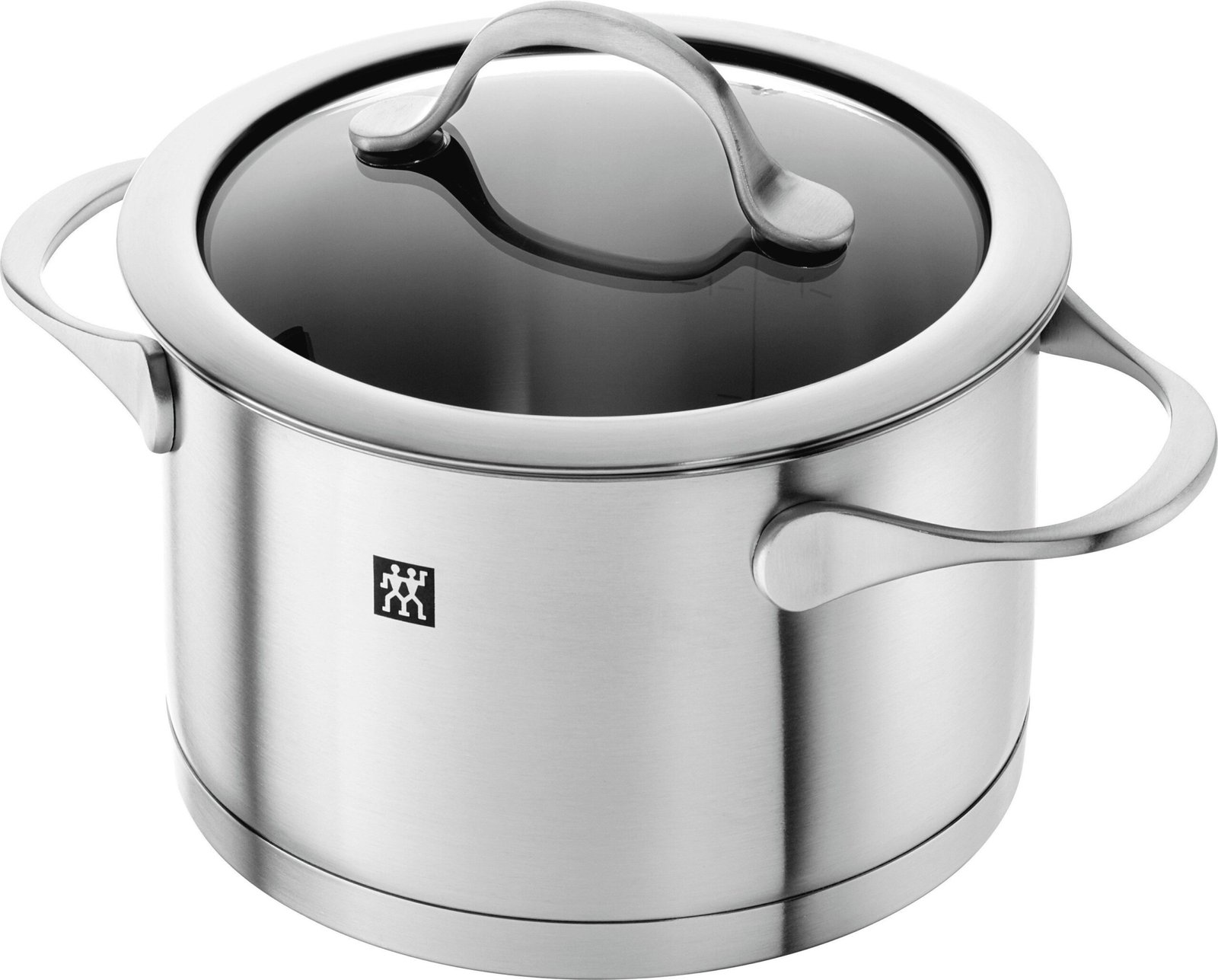 Zwilling Topf-Set Essence, Edelstahl 18/10 (Set, 9-tlg., je 1 Kochtopf Ø 16/20/24 cm, 1 Bratentopf Ø 20 cm, 1 Stieltopf Ø 16 cm), Sandwichboden sehr gute Wärmeverteilung Füllskala Edelstahlgussgriffe Topfsets Zwilling